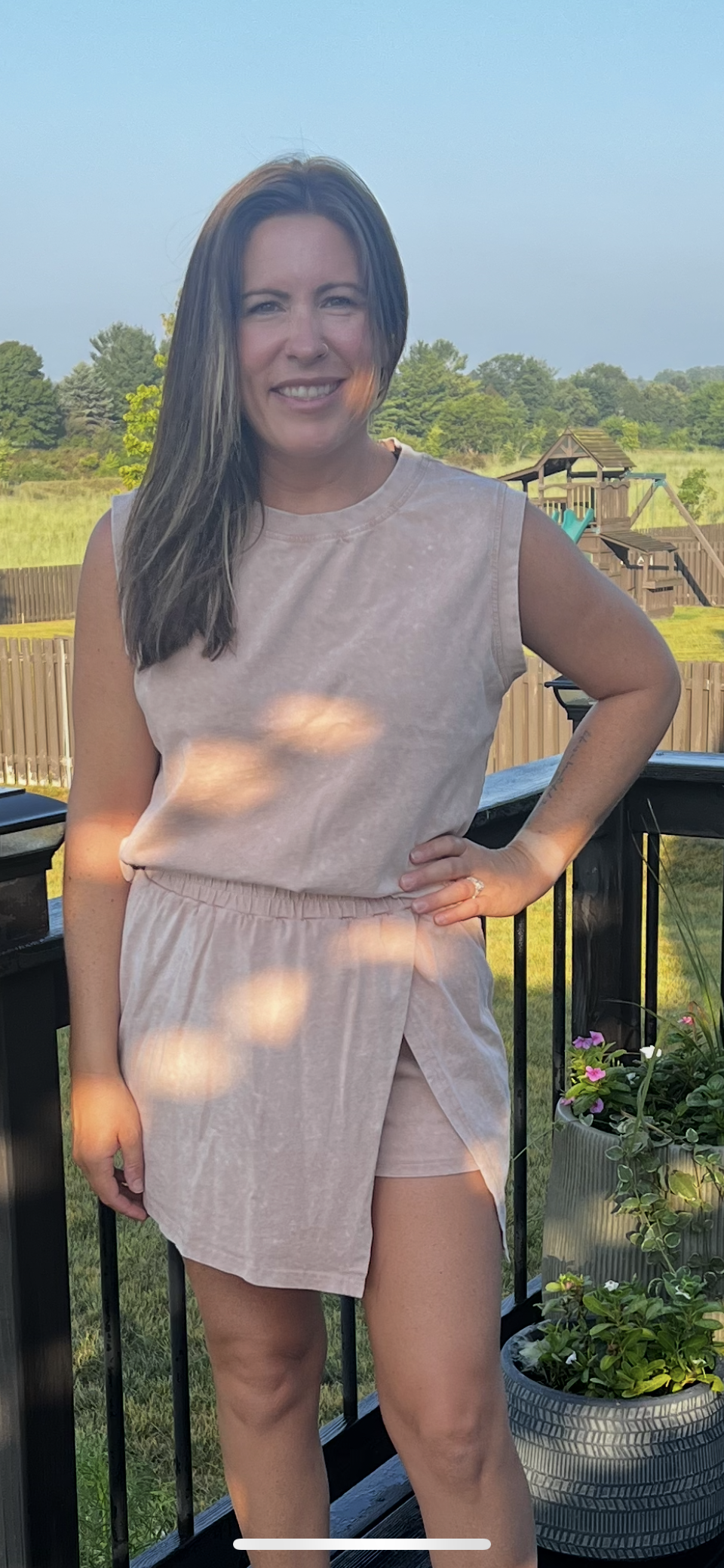 - This skirt set is very casual and sexy includes a tank top and a split skirt.