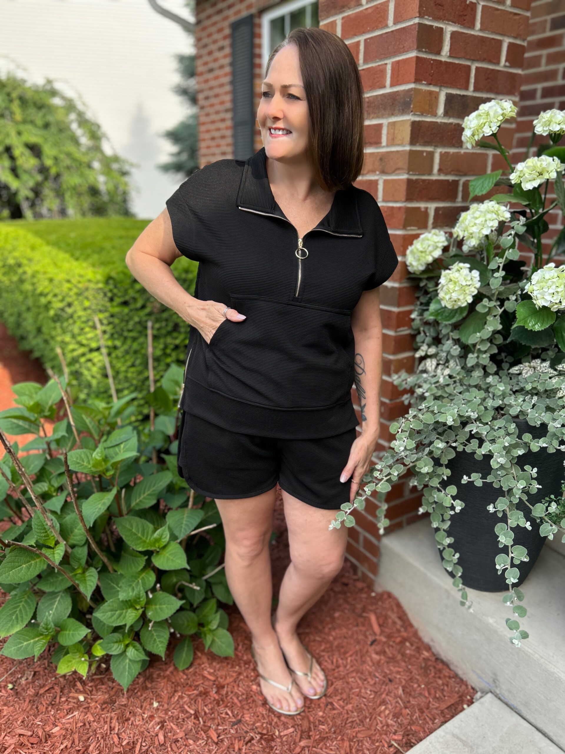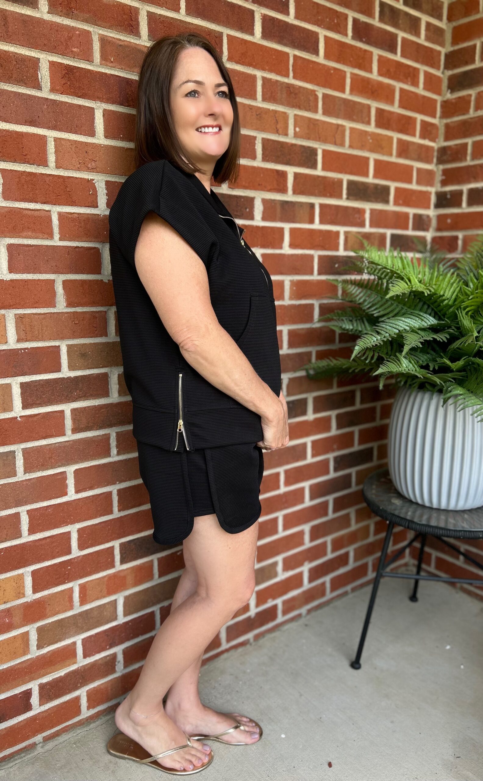 - The top has a zip up design, kangaroo pocket and side zipped slits.