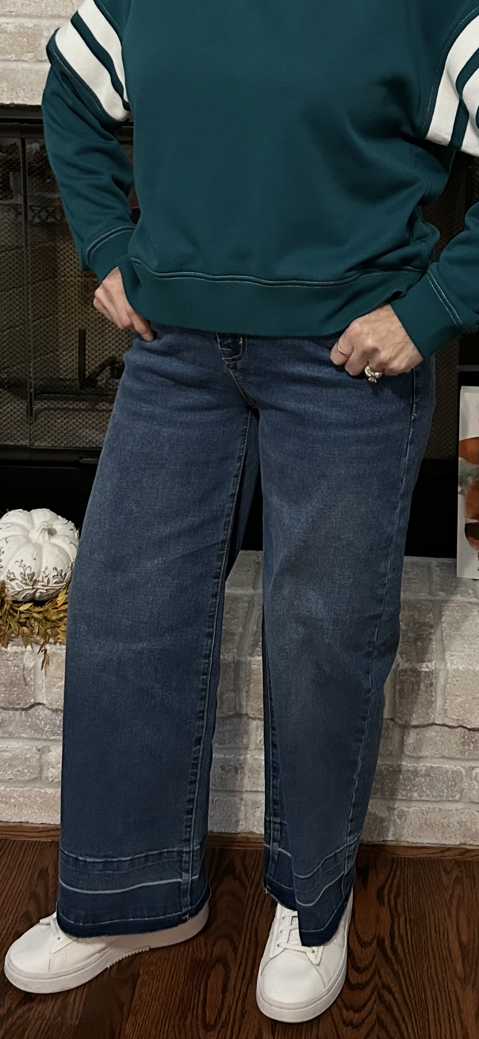 Trendy raw hem finish adds a casual-chic edge to any outfit.