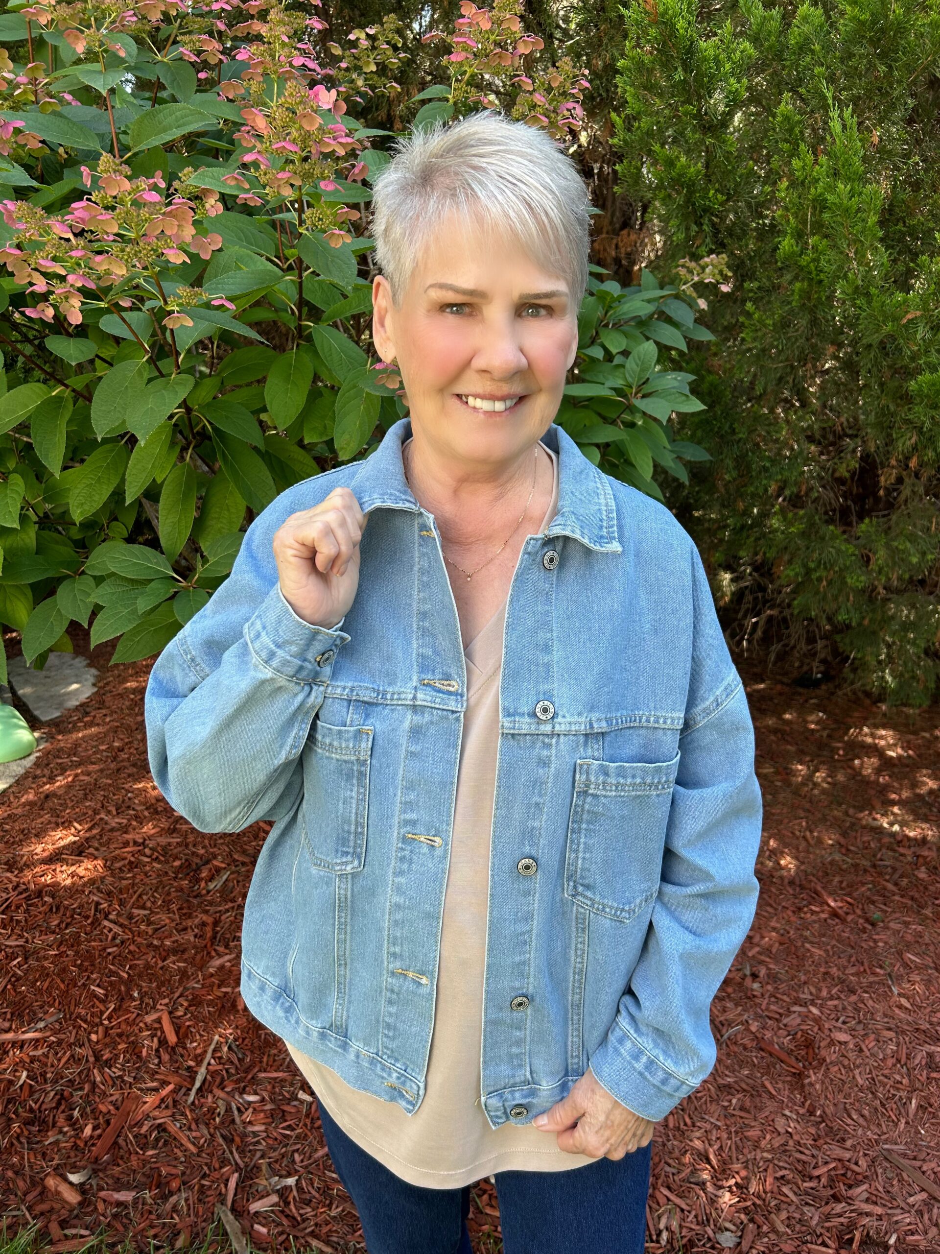 - This retro jacket with washed denim for a vintage and laid-back look.