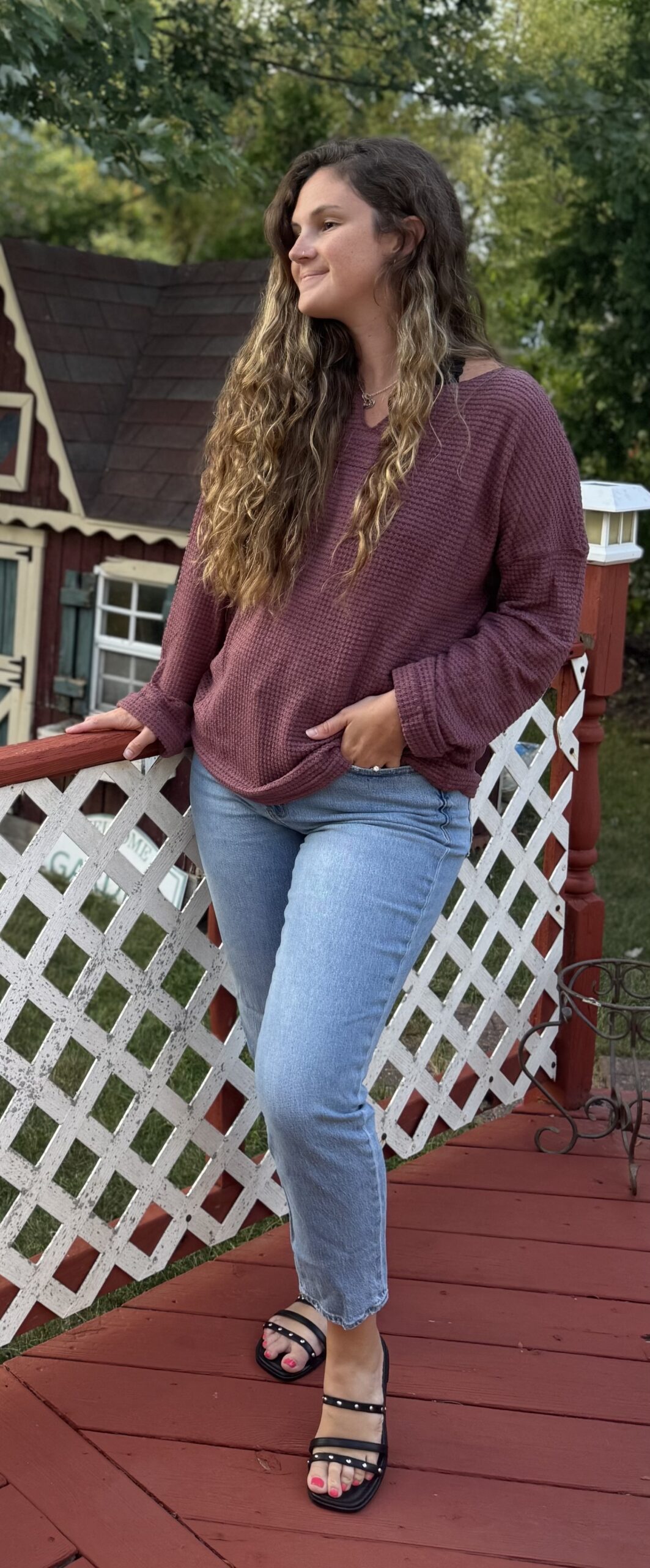 - This waffle knit top is lightweight and comfy for a casual daily wear